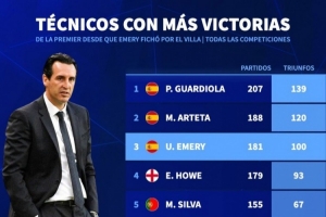 據德國轉會市場統計,埃梅里執教維拉以來帶隊贏得100場比賽,英超主帥同期勝場第三多。