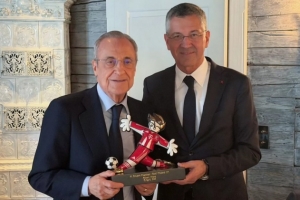 在兩隊(duì)于安聯(lián)球場(chǎng)展開(kāi)歐冠1/4決賽次回合決戰(zhàn)前,皇馬主席弗洛倫蒂諾·佩雷斯與拜仁最高代表赫伯特·海納,進(jìn)行了兩隊(duì)董事會(huì)的官方會(huì)晤。