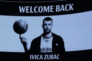 步行者中鋒、快船舊將祖巴茨來到現場,直覺巨蛋主場的大屏幕送上歡迎視頻!