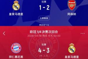 體育資訊04月16日訊 歐冠1/4決賽次回合,皇馬客場3-4遭拜仁逆轉(zhuǎn),兩回合4-6遭雙殺,止步8強(qiáng)。