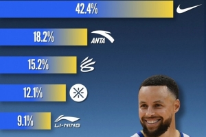 本賽季,庫(kù)里有4成的場(chǎng)次穿的是耐克球鞋,超過(guò)2成穿的是李寧(包括韋德系列),接近2成穿的是安踏。
