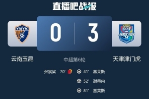 體育資訊4月17日訊 中超第6輪,天津津門虎客場3-0擊敗云南玉昆,收獲賽季首勝。