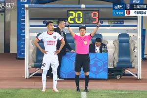 比賽第61分鐘,蓉城換人調整,王子銘換下費利佩。