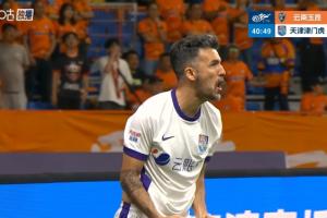 體育資訊04月17日訊 中超第6輪,云南玉昆vs天津津門虎,比賽第41分鐘,天津津門虎首開記錄,基萊斯面對出擊的門將墊射破門。