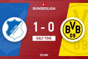 體育資訊4月18日訊 北京時間4月18日21:30,德甲第30輪多特挑戰(zhàn)霍芬海姆的比賽在普里賽爾競技場進行,上半場蘭姆佩爾開場抽射中楣,科貝爾獻精彩撲救,聚勒送點+傷退,克拉馬里奇點射首開記錄,半場結束,多特0-1霍芬海姆。