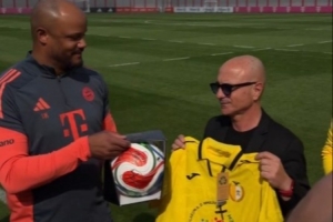 全部由業(yè)余球員組成的梵蒂岡隊在今日造訪了拜仁訓練基地,孔帕尼和諾伊爾作為代表和梵蒂岡隊進行了會面。