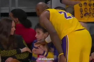 GIF-詹姆斯上前安撫被界外球砸到的小女孩