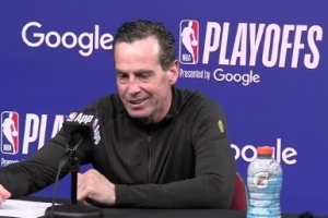 體育資訊4月19日訊 NBA季后賽首輪G1,騎士主場126-113戰勝猛龍,總比分1-0,賽后阿特金森接受采訪。