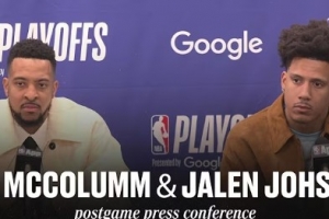 體育資訊4月19日訊 NBA季后賽東部首輪G1,老鷹102-113不敵尼克斯。賽后杰倫·約翰遜和麥科勒姆接受了媒體采訪,以下為采訪全文。