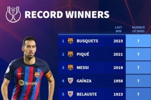 體育資訊4月19日訊 德國(guó)轉(zhuǎn)會(huì)市場(chǎng)統(tǒng)計(jì)了球員國(guó)王杯奪冠次數(shù),并列出榜單,布斯克茨、皮克、梅西等5名球員7冠居首,前10名中,有8名球員在巴薩奪得過(guò)國(guó)王杯冠軍。