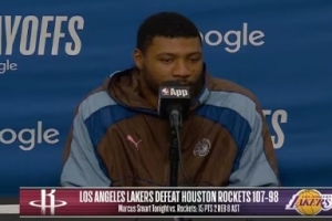 體育資訊4月19日訊 NBA季后賽G1,湖人在主場以107-98擊敗火箭。賽后,斯瑪特接受了記者采訪,以下為采訪全文。