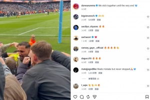 他也在賽后通過社媒曬出自己和曼城球迷相擁的動態,并配文:“我們團結到了最后一刻。”