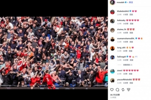 由于薩拉赫已經官宣賽季結束后離隊,這也將是他在默西賽德郡德比的最后一球。他也在賽后通過社媒曬出自己進球后和利物浦球迷的互動慶祝照,依然沒有附加文字內容。