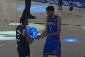 霍姆格倫:“我同樣也不會把球遞給他,所以,我沒有往心里去。你知道,他有他自己打球時的個性,我覺得他是想把球先給他的隊友,但是,在比賽開始前,我還是摸到球、找到了手感。所以一切都很好。”
