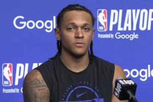 班凱羅:過(guò)去發(fā)生的事情,你沒(méi)有任何辦法去改變。說(shuō)到底,我們現(xiàn)在站在了季后賽的舞臺(tái)上,我們有機(jī)會(huì)去實(shí)現(xiàn)我們從去年十月起就設(shè)定的目標(biāo)。所以就像我說(shuō)的,你不能太糾結(jié)于常規(guī)賽發(fā)生的事情和那些挫折,你必須把大家團(tuán)結(jié)起來(lái),意識(shí)到我們現(xiàn)在全員健康,我們感覺(jué)整個(gè)團(tuán)隊(duì)非常有默契。我們?cè)趯?duì)陣黃蜂的比賽中找到了防守、能量和溝通的感覺(jué),我們知道只要能延續(xù)這種表現(xiàn),無(wú)論對(duì)手是誰(shuí),我們每晚都有機(jī)會(huì)贏球。所以,這絕對(duì)是一個(gè)全新的賽季,全新的能量。