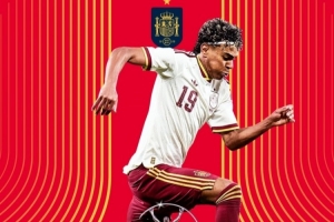 西班牙國家隊官推曬出海報,祝賀亞馬爾獲獎,并配文寫道: