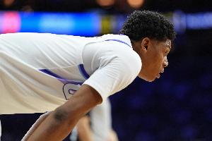 體育資訊3月14日訊 爵士客場挑戰開拓者,下半場球隊官宣五號秀埃斯·貝利出現腦震蕩,本場比賽不會回歸。
