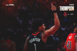賽后火箭官方發布杜蘭特和阿門·湯普森本場數據海報。