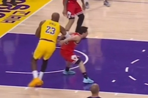 GIF-河村勇輝換防到詹姆斯后努力卡位