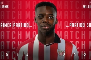 體育資訊3月14日訊 畢爾巴鄂競技官推發文,球隊青訓前鋒伊納基·威廉姆斯迎來其畢巴生涯500場里程碑。