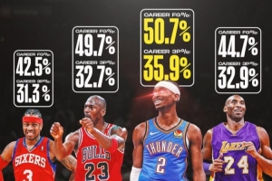 每名球員頭頂最上方為生涯命中率 下方為三分命中率