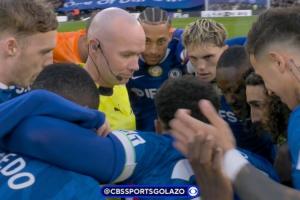 今天,裁判保羅·蒂爾尼發(fā)現(xiàn)自己身處切爾西球員的圍圈之中。由于是紐卡開球,裁判通常會(huì)來到中線附近控制球權(quán),以防止任何潛在的問題。然而,切爾西卻擅自決定讓主裁蒂爾尼站在他們中間,進(jìn)行圍圈儀式,此舉也可謂是相當(dāng)炸裂。