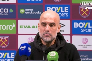 體育資訊3月15日訊 英超第30輪比賽,曼城在客場以1-1的比分戰平西漢姆聯。在少賽一場的情況下,他們已經落后榜首的阿森納9分,想要奪冠非常困難。賽后,曼城主帥瓜迪奧拉談論了相關話題。