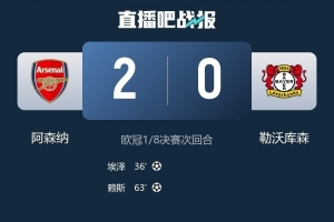 體育資訊3月18日訊 歐冠1/8決賽次回合,阿森納主場2-0擊敗勒沃庫森,兩回合總比分3-1淘汰對手,晉級八強。