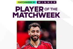 體育資訊3月18日訊 英超官方消息,曼聯中場B費當選聯賽第30輪最佳球員。
