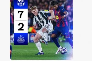 體育資訊03月19日訊 歐冠16強次回合,巴薩7-2總比分8-3狂勝紐卡。紐卡下半場泄氣,后半場比賽變成了巴薩單方面的比賽。紐卡官方X除了在下半場開始時說了句“小伙子們全力以赴”后,除了發布換人信息,之后的時間變成了報分機器人。