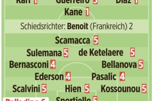 中場:格雷茨卡(2)、帕夫洛維奇(2)、卡爾(1)、格雷羅(3)、迪亞斯(1)