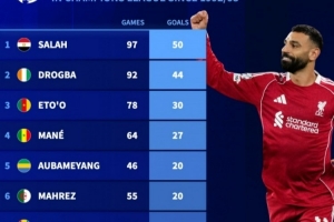 體育資訊3月19日訊 在歐冠淘汰賽次回合,利物浦4-0大勝加拉塔薩雷,薩拉赫破門,打進個人生涯歐冠第50球,以下為非洲球員在歐冠改制后射手榜: