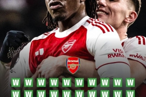 本賽季,阿森納各項(xiàng)賽事49場(chǎng)比賽已經(jīng)取得了38場(chǎng)勝利,比2003-04賽季的不敗賽季取勝場(chǎng)次還要多1場(chǎng)。