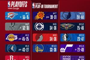 今日的NBA常規賽全部結束,讓我們繼續一起來關注最新排名: